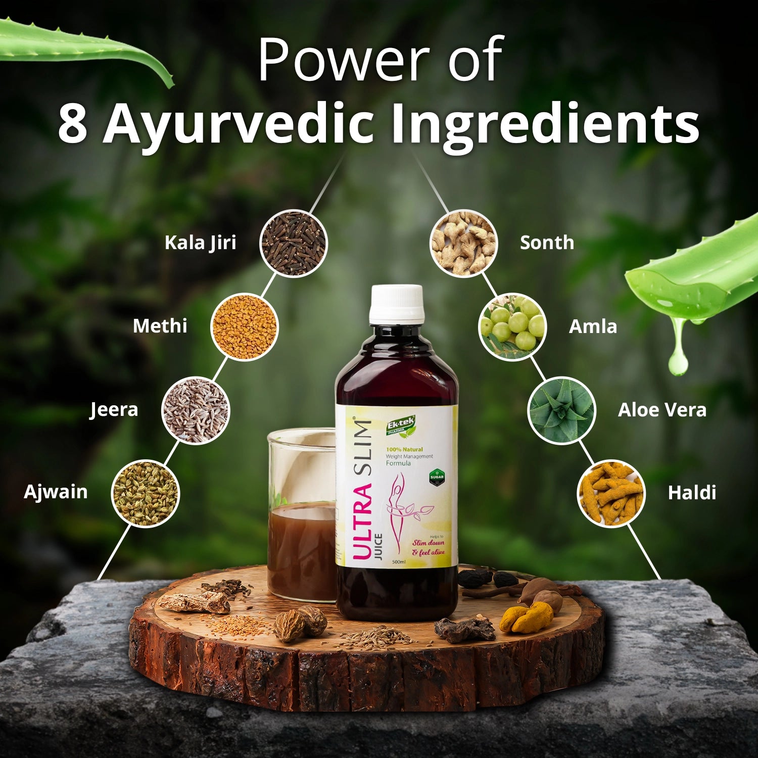 Ektek’s Ultra Slim is ayurvedic fat burner medicine that contains 100% natural ingredients such as methi, jeera, sauf, ajwain, saunth, green tea, etc. This helps reduce weight in a natural way.